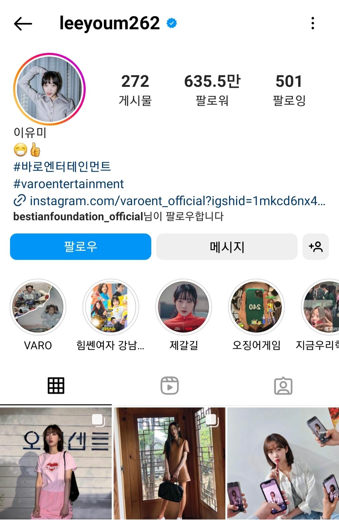 이유미 씨는 오징어 게임의 세계적인 흥행으로 인스타그램 팔로워 수가 폭발적으로 증가했는데요. 4만 중반에서 현재는 630만 명대로 어마어마한 팔로워 수를 자랑하고 있습니다.